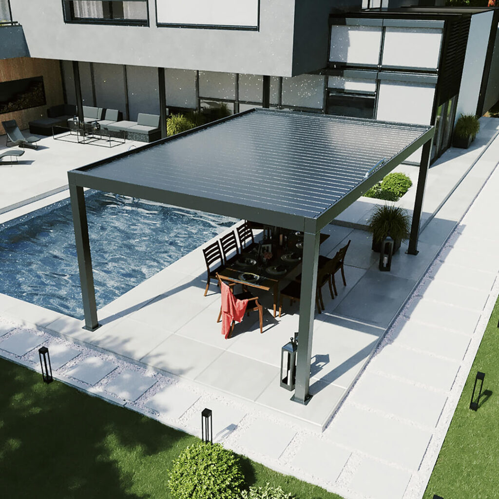 Pergomella systemet er en pergola med lameller, og er designet for brukere som setter pris på komfort og elegant design. Med en pergola kan du utvide hagen eller terrassen til et lunt og harmonisk uterom på flotte sommerkvelder. Pergomella er en enestående kombinasjon av funksjonalitet og design, og kan bli som en integrert forlengelse av boligen.